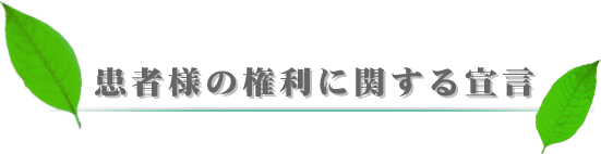 レイクヒルズ美方病院では、患者様の医療に対する主体的な参加を支援し、患者様と病院職員との信頼関係を築き上げるため、『患者様の権利に関する宣言』を行い、患者様中心の医療を提供いたします。 |